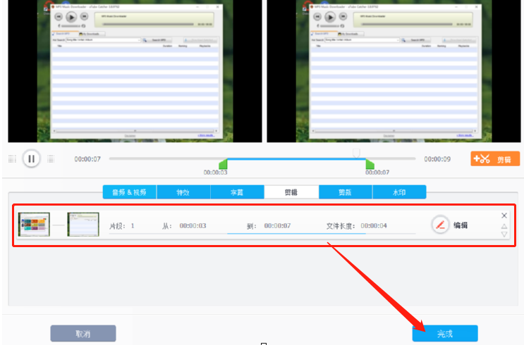 6.点击剪辑按钮之后在下方的界面中就会出现我们选择好的剪切片段了,然后我们在点击界面下方的完成按钮。