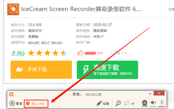 4.等到录制完成之后我们就可以按下键盘F8键或者是点击左下角的停止按钮来停止录制操作了。