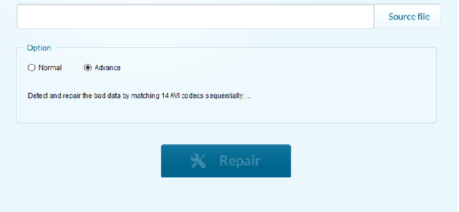 1.首先第一步我们打开软件之后在界面的右上方点击Source file这个功能按钮,然后选择要修复的AVI文件。