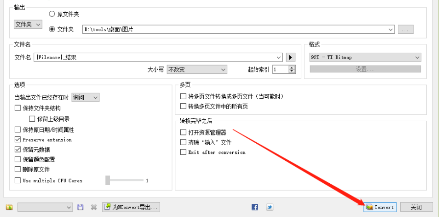 6.最后一步我们在设置好输出路径之后,在界面右下角找到Convert这个转换按钮,点击转换按钮即可开始批量降噪图片。