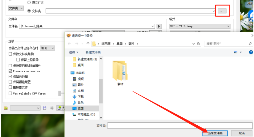 5.点击输出之后在输出这个文件模块中点击三点按钮就可以打开选择输出文件的界面了,我们根据自己的需求选择想要输出保存文件的文件夹即可。