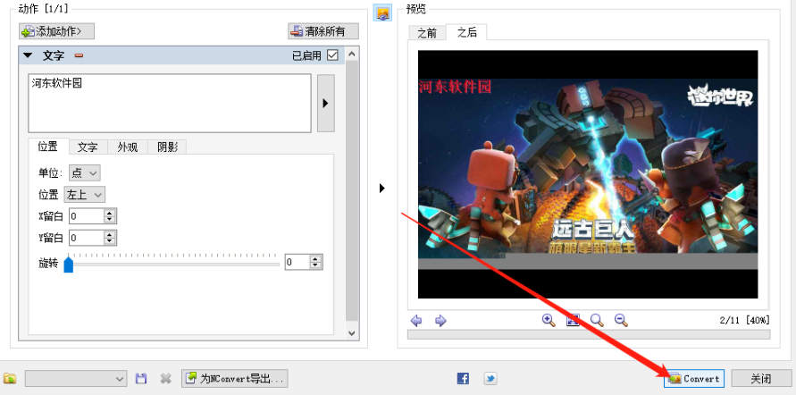 6.最后我们只需要点击界面右下角的Convert这个转换按钮就可以开始批量给这些图片添加设置好样式的文字了。