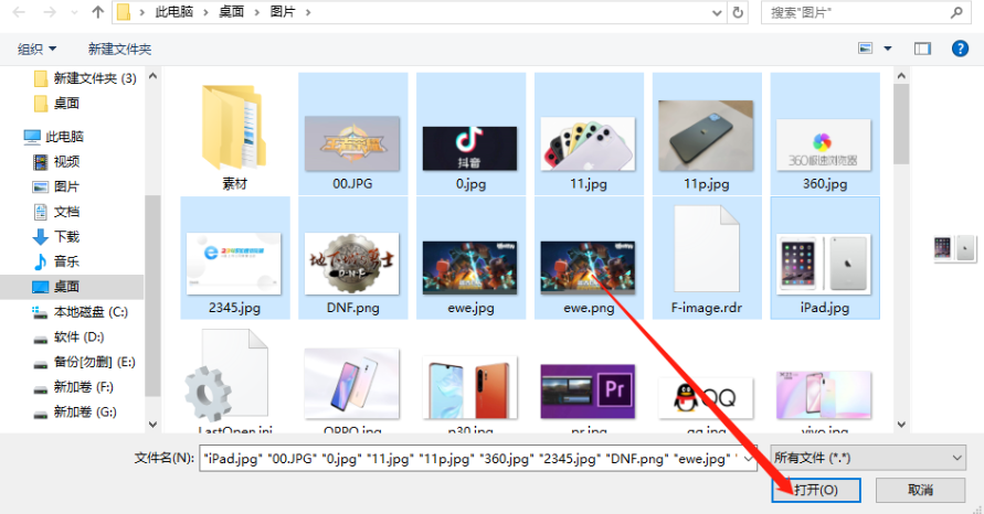 2.点击添加按钮之后下一步就是在出现的界面中选择想要处理的图片了,按住Ctrl键可以多选,将所有需要处理的图像选择完成之后点击右下角的打开按钮。