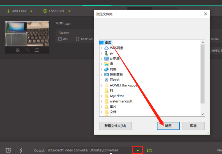 5.紧接着下一步我们点击下方输出路径旁边的三角图标,点击之后可以在出现的界面中自定义选择输出储存位置。