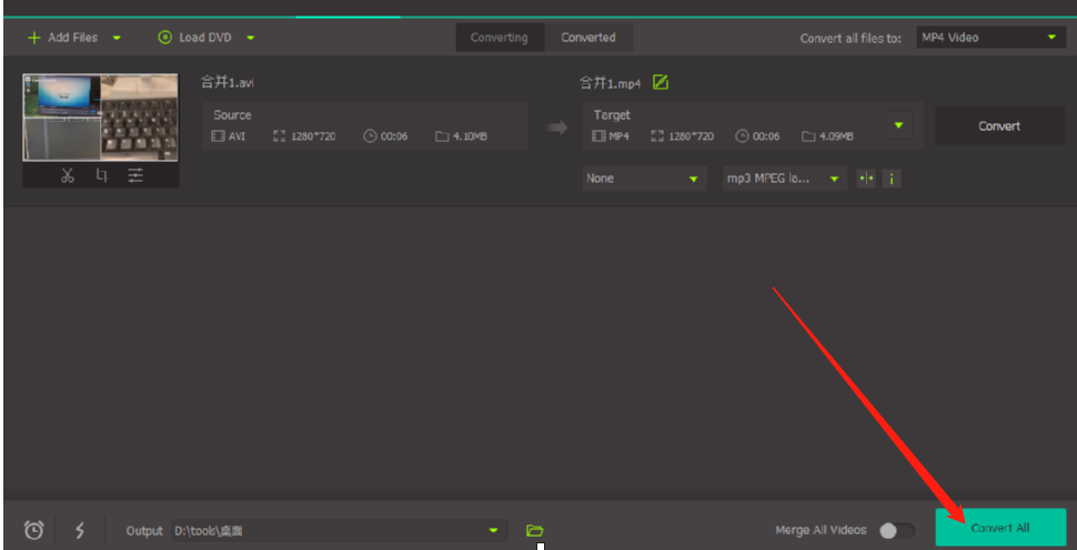 6.最后设置好输出储存位置之后我们点击界面右下角的Convert All这个功能按钮就可以开始转换视频格式的操作了。