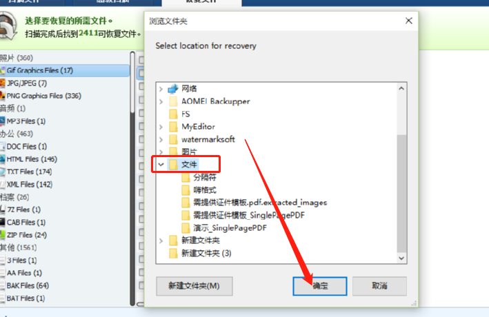 6.点击恢复按钮之后还会出现一个浏览文件夹的界面,在其中我们选择好文件恢复之后储存的位置之后点击确定按钮就可以了。