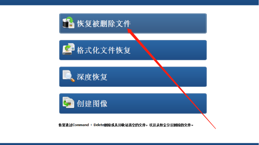 1.首先第一步我们打开软件之后在软件的主界面中点击恢复被删除文件这个功能按钮,点击之后可以进入恢复删除文件的功能界面。