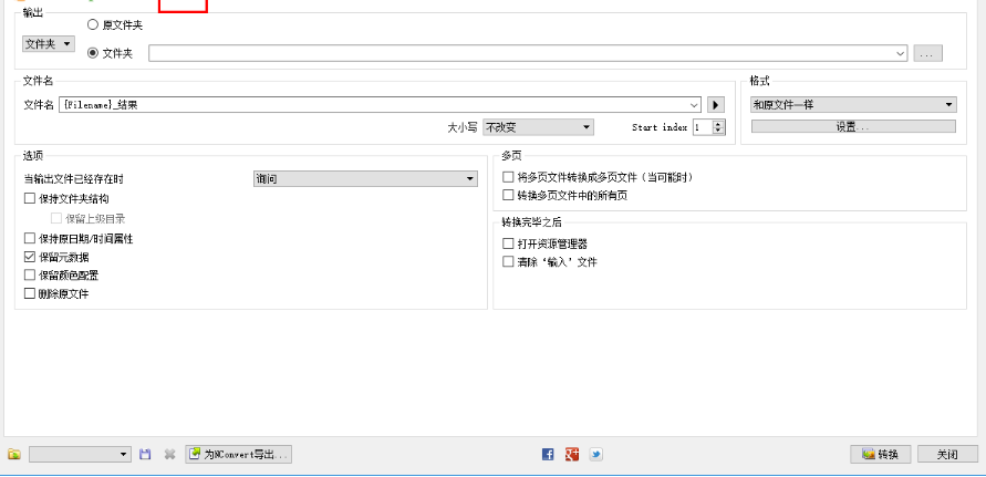 4、输出,用户可以输出文件夹、文件名、选项、格式等输出参数进行设置。