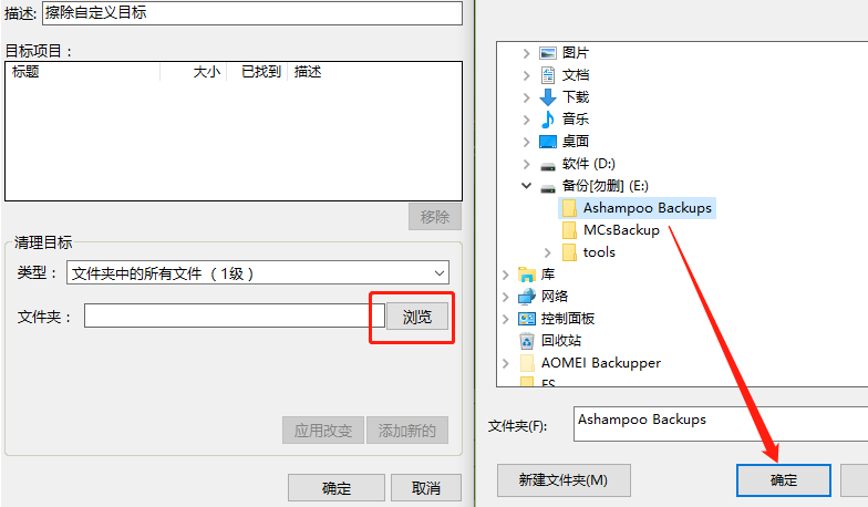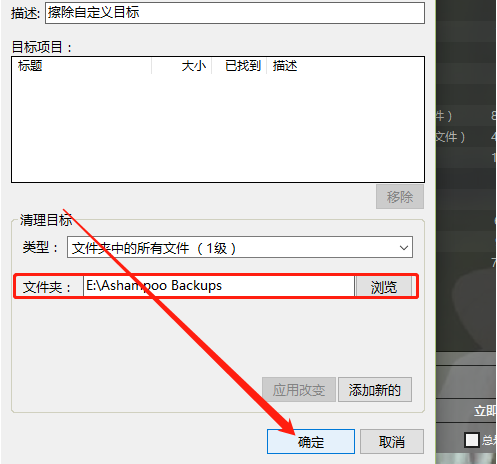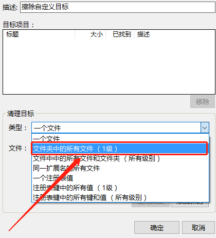 2.点击添加自定义目标之后会出现下图所示的界面,然后我们在类型这里可以选择清理目标的文件类型,是单个文件还是文件夹。