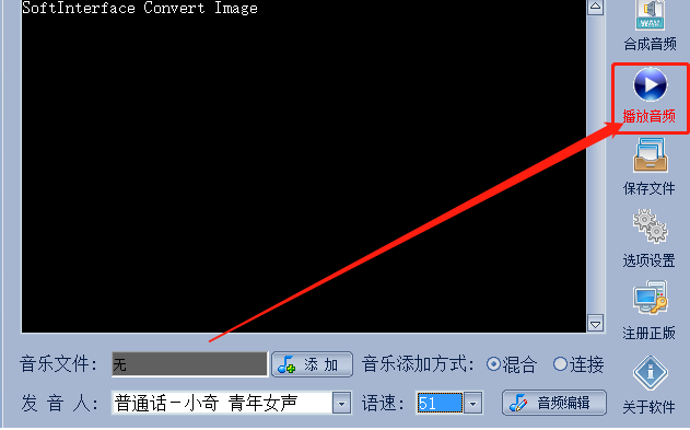 4.紧接着下一步我们在设置好音频文件的参数之后可以点击右边的播放音频这个功能按钮来试听一下音频效果。