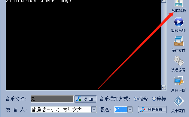 5.音频效果试听完成之后我们就可以点击界面左上角的合成音频这个功能按钮来开始合成操作了,合成之后点击保存文件即可将音频保存下来。