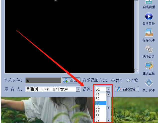 3.选择好发音人之后下一步我们还可以设置合成音频的语速,这个语速也是可以根据用户的个人需求进行选择设置的。