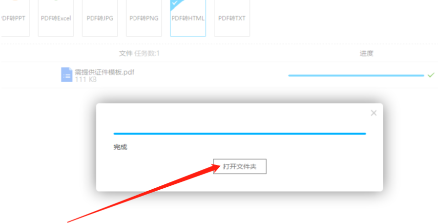 5.等到转换完成之后在软件的主界面中会提示转换完成,然后我们点击这个提示界面中的打开文件夹按钮可以马上打开文件夹进行查看文件。