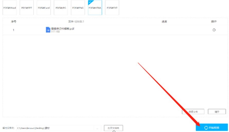 4.在设置好输出文件夹之后,我们点击界面右下角的开始转换这个功能按钮就可以开启文件转换的操作了。