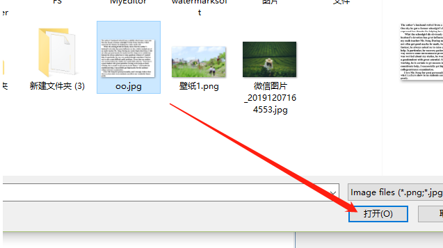 2.点击选择文件按钮之后,我们在出现的界面中选中想要识别文字的图片文件,然后点击右下角的打开按钮。
