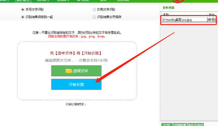 3.点击打开按钮之后我们选择的图片文件就成功添加到软件界面中了,在右上方可以看到文件列表,紧接着我们点击开始识别按钮。