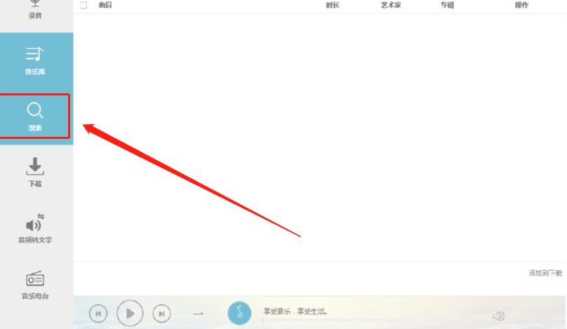 1.首先第一步我们点击打开软件之后在软件界面左边点击搜索这个功能模块,将软件界面切换到搜索界面当中。