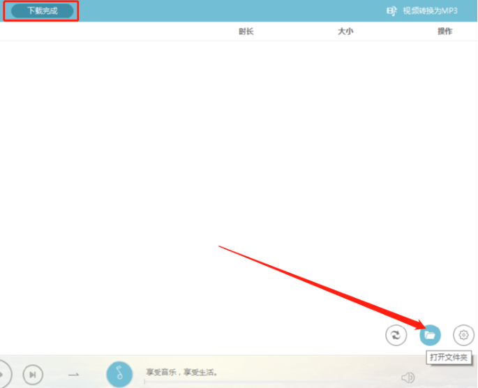 6.最后等到下载完成之后,在已完成界面可以看到下载好的音频,然后我们点击右下角的打开文件夹按钮即可查看下载好的音乐文件。