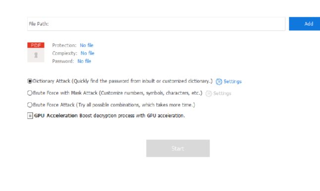 1.首先第一步我们打开软件之后需要在软件界面中点击Add这个功能按钮,点击之后即可添加要破解的PDF文件。
