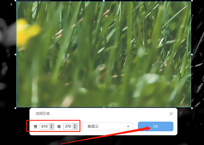 3.选择好录制区域之后松开鼠标左键,然后我们就可以看到选取的尺寸宽高数据了,点击界面中的OK按钮即可完成录制区域的自定义选择。