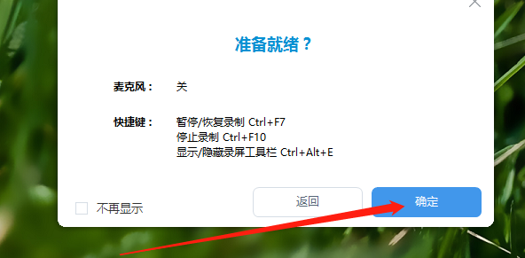 4.点击OK按钮之后就会进入到录制的操作过程,再此之前我们会看到下图所示的界面,其中有一些快捷键信息,查看之后点击确定按钮即可开始录制视频的操作。