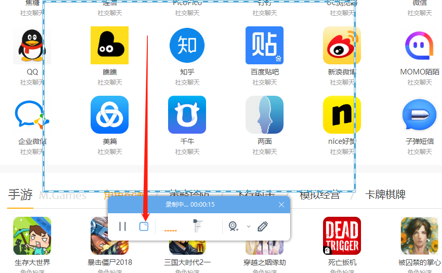 5.开始录制之后我们就做自己需要录制下来的操作即可,录制完成之后点击选框下方的正方形图标,也就是停止按钮。