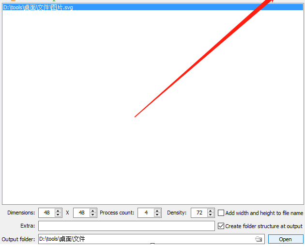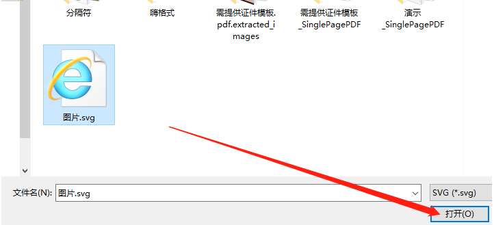 2.点击选择添加文件选项之后,下一步就是在出现的界面中选择要进行转换的svg图像,选中之后点击界面右下角的打开按钮。