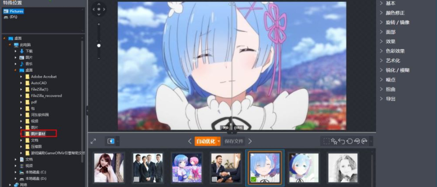 2、用户在左侧的目录下找到要处理的图片/照片所在的文件夹,选中后即可在底部的列表下选择要处理的图片。