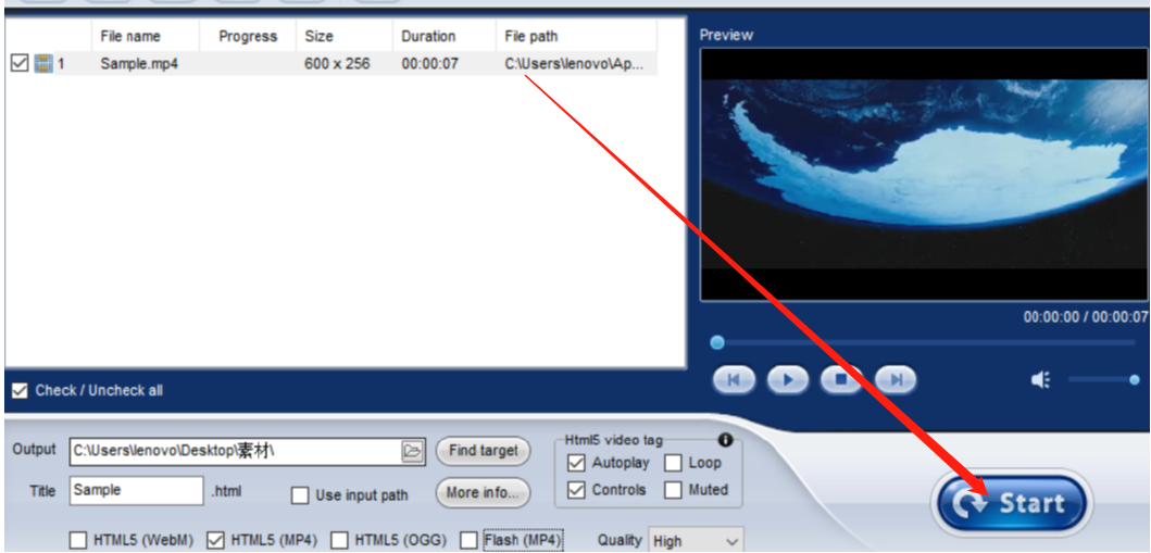 5.选择好转换的网页文件类型之后,我们就可以点击界面右下角的Start这个功能按钮来开始转换视频的操作了。