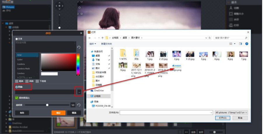 6、若用户选择【图像】水印,可以点击【...】按钮,在呼出的打开窗口中选择作为水印的图片。