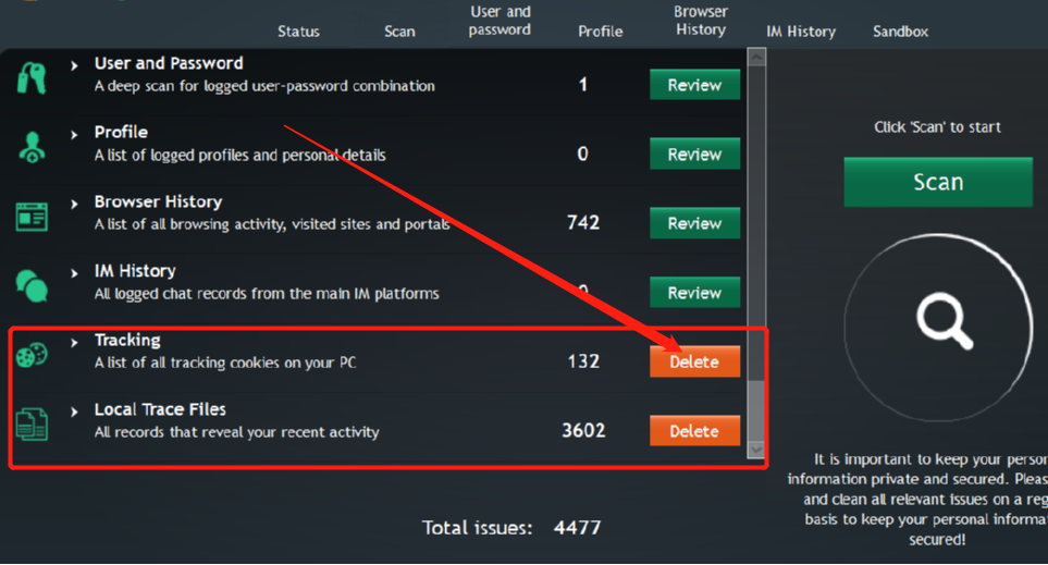 3.等到扫描完后之后在软件的界面中可以看到扫描出来的一些可以删除的文件,这些文件数据都是浏览器中的一些无用的缓存数据,然后我们点击Delete按钮即可删除。