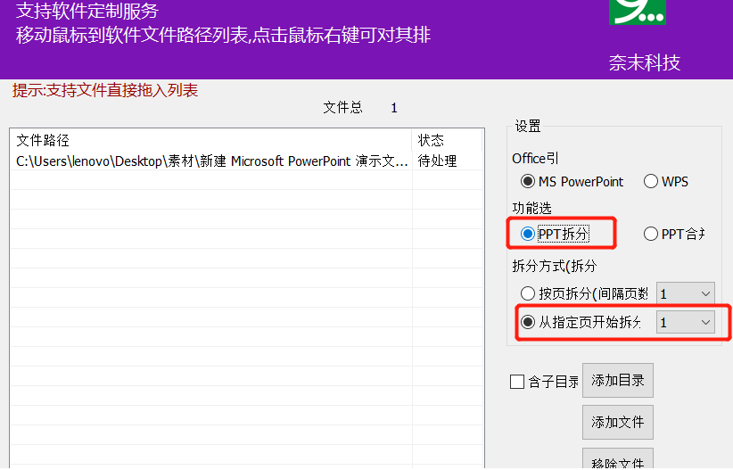 您的位置:首页 >奈末PPT批量拆分合并成助手拆分PPT文件的方法