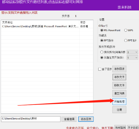 5.最后我们只需要在界面中点击开始处理这个功能按钮,软件就会自动开始拆分PPT文件并帮我们保存下来了。