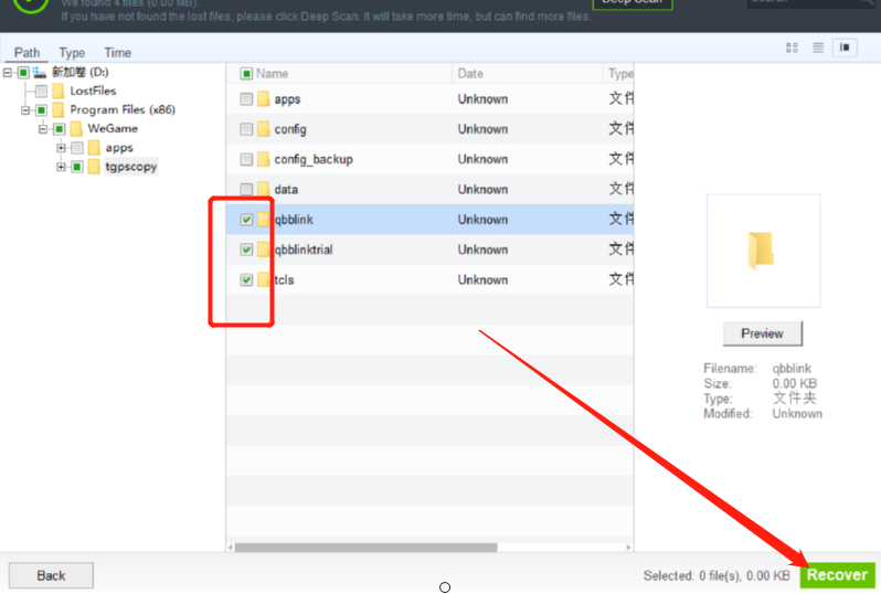 4.最后我们就可以找到想要恢复的文件,勾选前面的方框之后在点击右下角的Recover这个按钮就可以开始将这些文件恢复回来了。