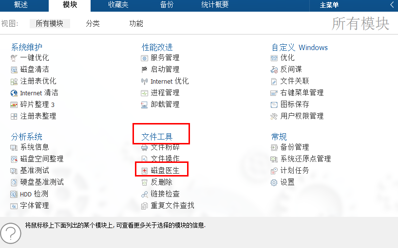 3、用户在文件工具一栏下找到并选择【磁盘医生】功能。