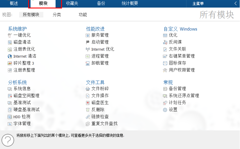 2、用户点击功能栏上的模块,并进入软件功能与模块界面,如下图所示。