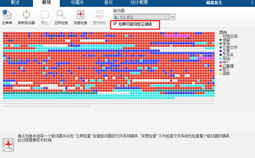 6、您可以勾选【如果可能则修正错误】的选项,当用户检测到错误则自动尝试修复。