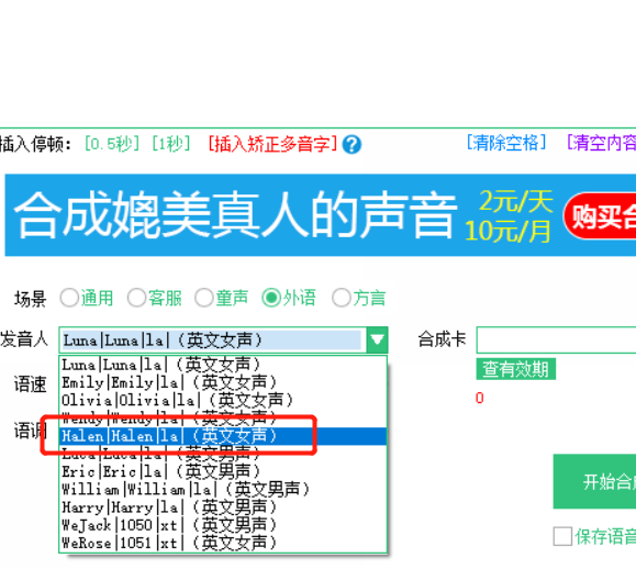 3.紧接着下一步我们可以在发音人这个选项对语音的发音人进行选择,打开下拉列表之后在其中选择自己需要的即可。