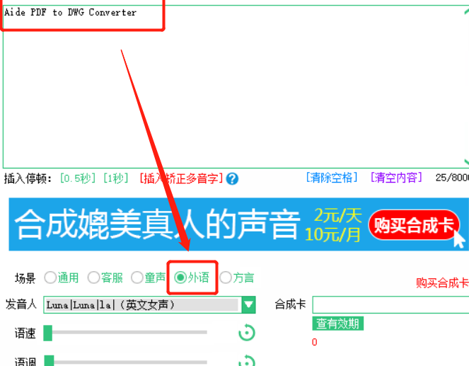 2.将要合成的文字内容添加到软件界面之后,下一步就可以在软件的下方选择转换语音的场景了,可以根据文字内容选择对应的场景。