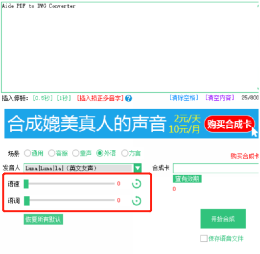 4.然后我们还可以对转换语音文件的语速、语调等参数进行选择设置,都是可以根据用户的个人需求进行调整的。