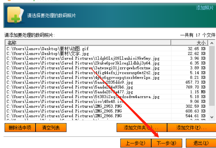 3.点击确定按钮之后下一步软件会自动识别文件夹中存在的图片文件,识别出来之后如下图所示,然后点击下一步按钮。