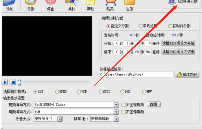 5.最后我们在完成上述步骤中的所有操作之后就可以点击界面右上角的AVI快速分割这个功能按钮来开始分割文件的操作了。