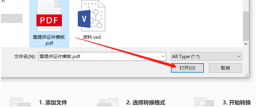 2.点击加号按钮之后就会打开选择文件的界面了,在这个界面中我们找到想要转换的PDF文件选中之后再点击打开按钮。