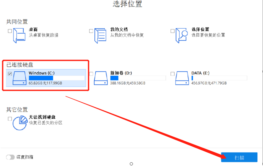 2.点击下一个按钮之后,我们会来到选择扫描磁盘的界面,在其中勾选要扫描的磁盘之后点击右下角的扫描按钮。