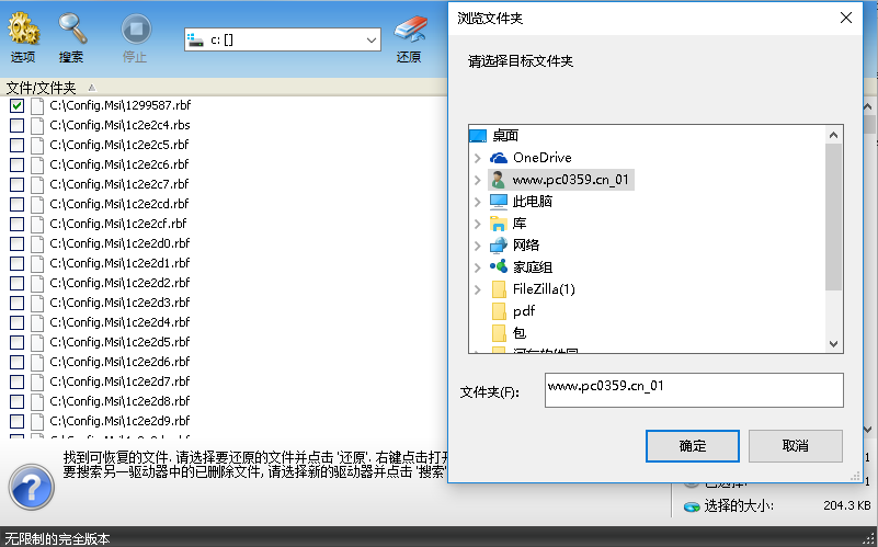 7、弹出如下的浏览文件夹窗口,我们选择恢复的目录位置,然后点击“确定”按钮即可。