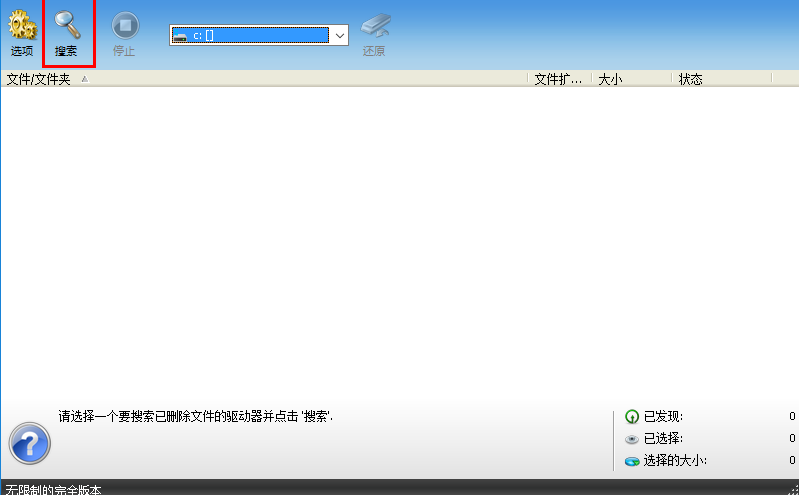 4、我们点击“搜索”按钮,软件即可搜索磁盘中丢失或已删除的文件。