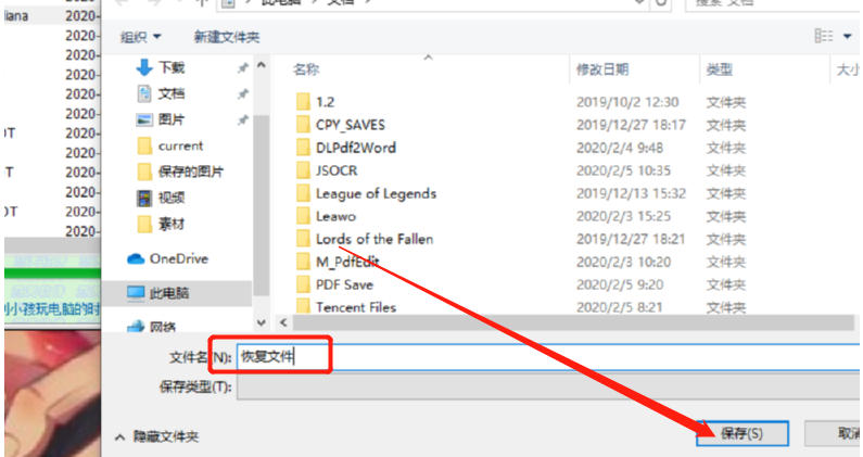 4.点击另存为之后就会打开另存为文件的界面了,在其中我们输入文件的名称,然后点击保存按钮就可以将文件恢复回来了。