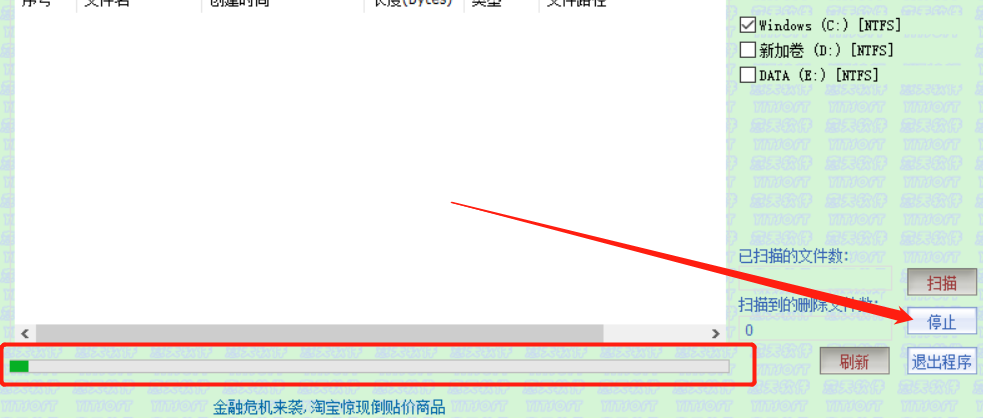 2.开始扫描以后在界面的下方会出现扫描进度条,提示我们扫描的进度,点击停止按钮的话可以停止扫描。