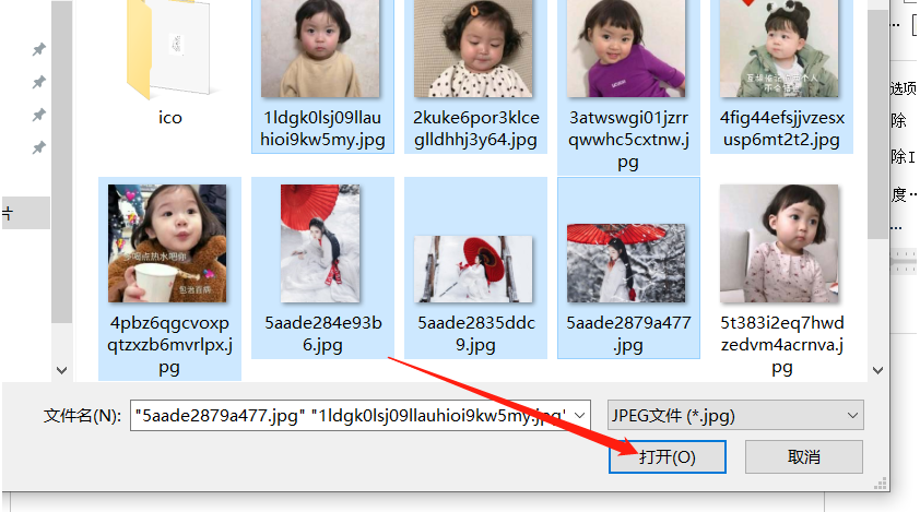 2.点击添加按钮之后在出现的选项中选择我们要压缩的JPG图片,全部选中之后点击打开按钮。