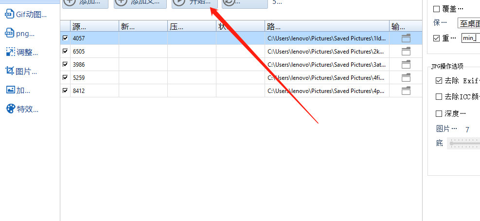 4.最后选择好基本选项之后,我们点击界面上方的开始这个功能按钮就可以开始批量压缩JPG图片的操作了。
